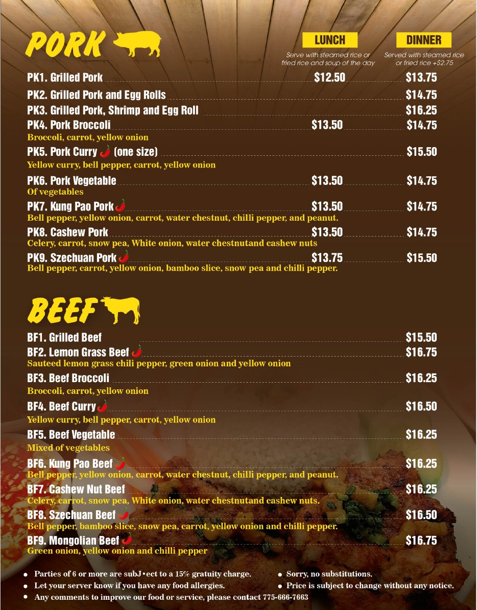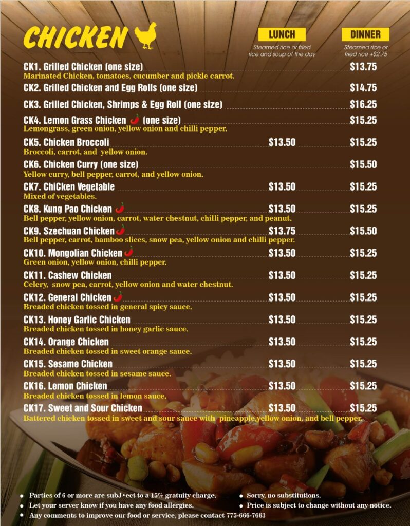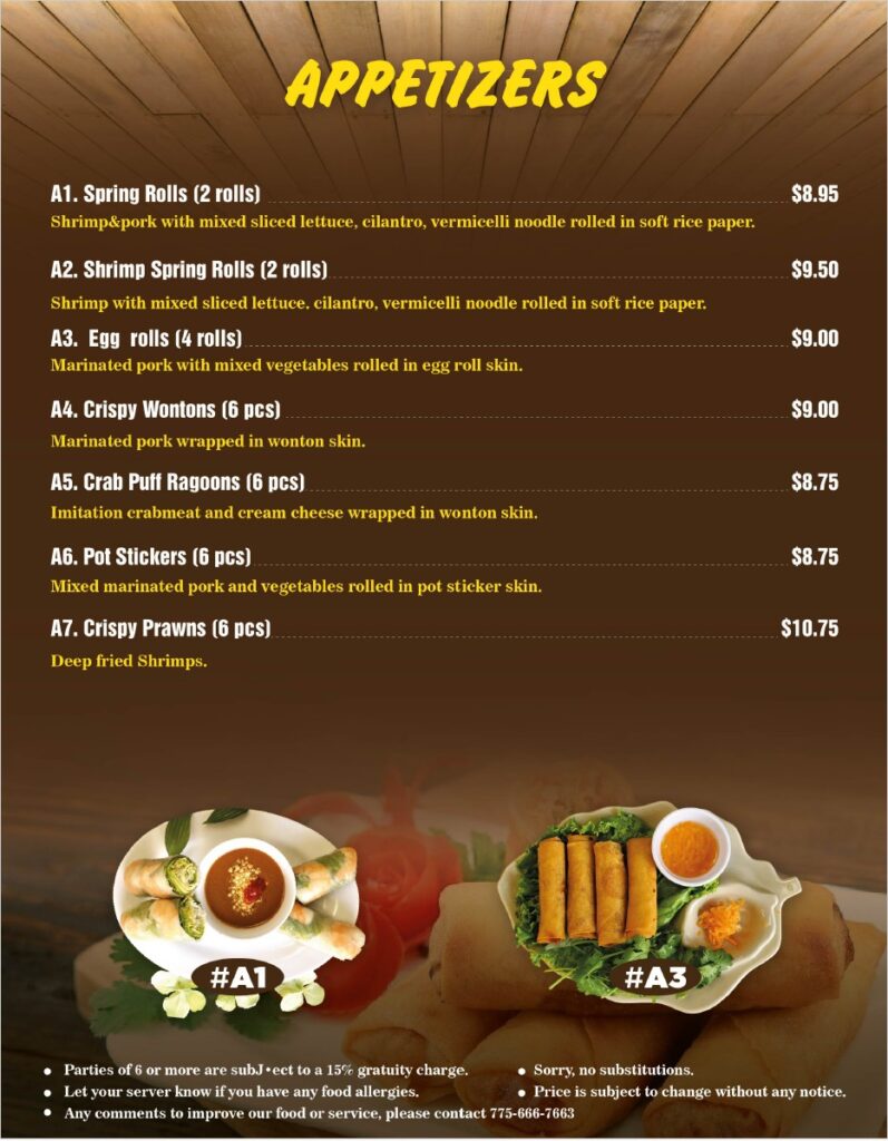 We are in the process of updating our Menu Item and Prices, below is the old one for reference only as prices may have increased.